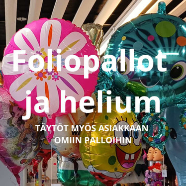 Myymälästä löytyy mahtava valikoima foliopalloja edulliseen hintaan, heliumilla tai ilman. Täytämme myös asiakkaan omia palloja, täytöt alkaen 3,50€.