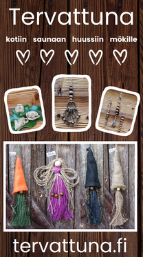 Liisan aidosti käsityönä valmistamat tervahelmikoristeet, tervatontut ja tervaenkelit lahjaksi, kotiin, saunaan ja mökille. Tuotteet valmistuvat Liisandan omalla pajalla myymälän yhteydessä.
